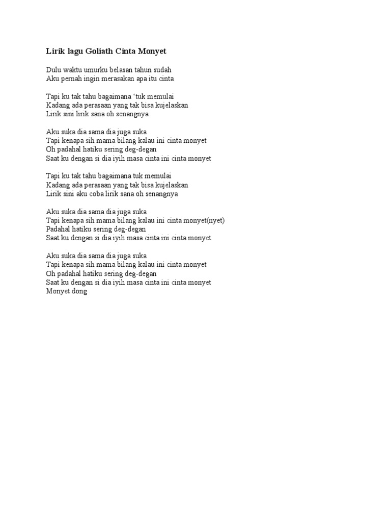 Lirik Lagu Goliath Cinta Monyet Pdf